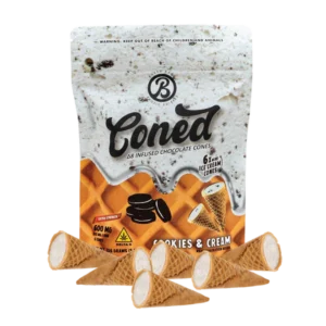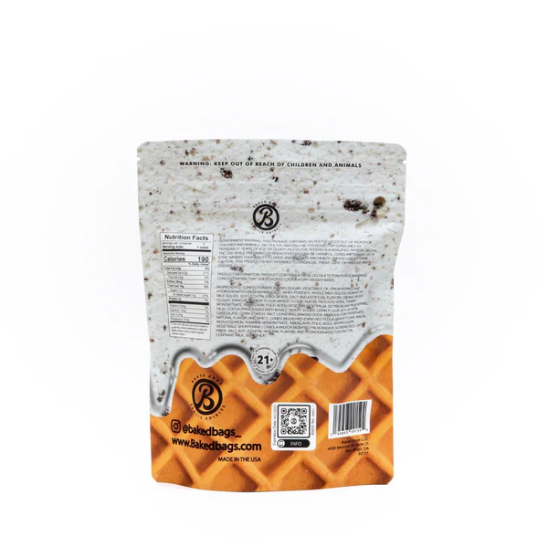 Baked Bags Cookie & Cream Cones sind köstliche Mini-Kekstüten gefüllt mit reichhaltiger Schokolade, angereichert mit Delta-9-THC. Sie bieten ein intensives Kopf- und Körpererlebnis, das Sie sich wie zu Hause fühlen lässt. Holen Sie sich eine Cookie & Cream Schokoladentüte und genießen Sie einen Eisbecher in vollen Zügen, während Sie die unglaubliche Wirkung von Delta-9-THC spüren!