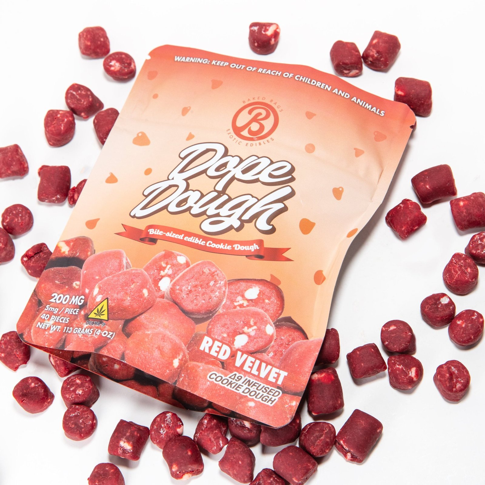 Our Delta-9 THC cookie dough bites by baked bags feature 200mg of Delta-9 THC in each bag for maximum effects. 40 pieces of dough per bag equaling 5 mg each piece.