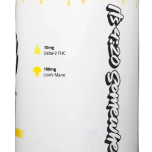 Ingredientes: Agua filtrada, néctar de agave azul orgánico, aroma natural, alulosa, ácido cítrico, fruto del monje, delta 9 THC (derivado del cáñamo), extracto de té verde, extracto de hongo melena de león, sorbato de potasio, amarillo 6.